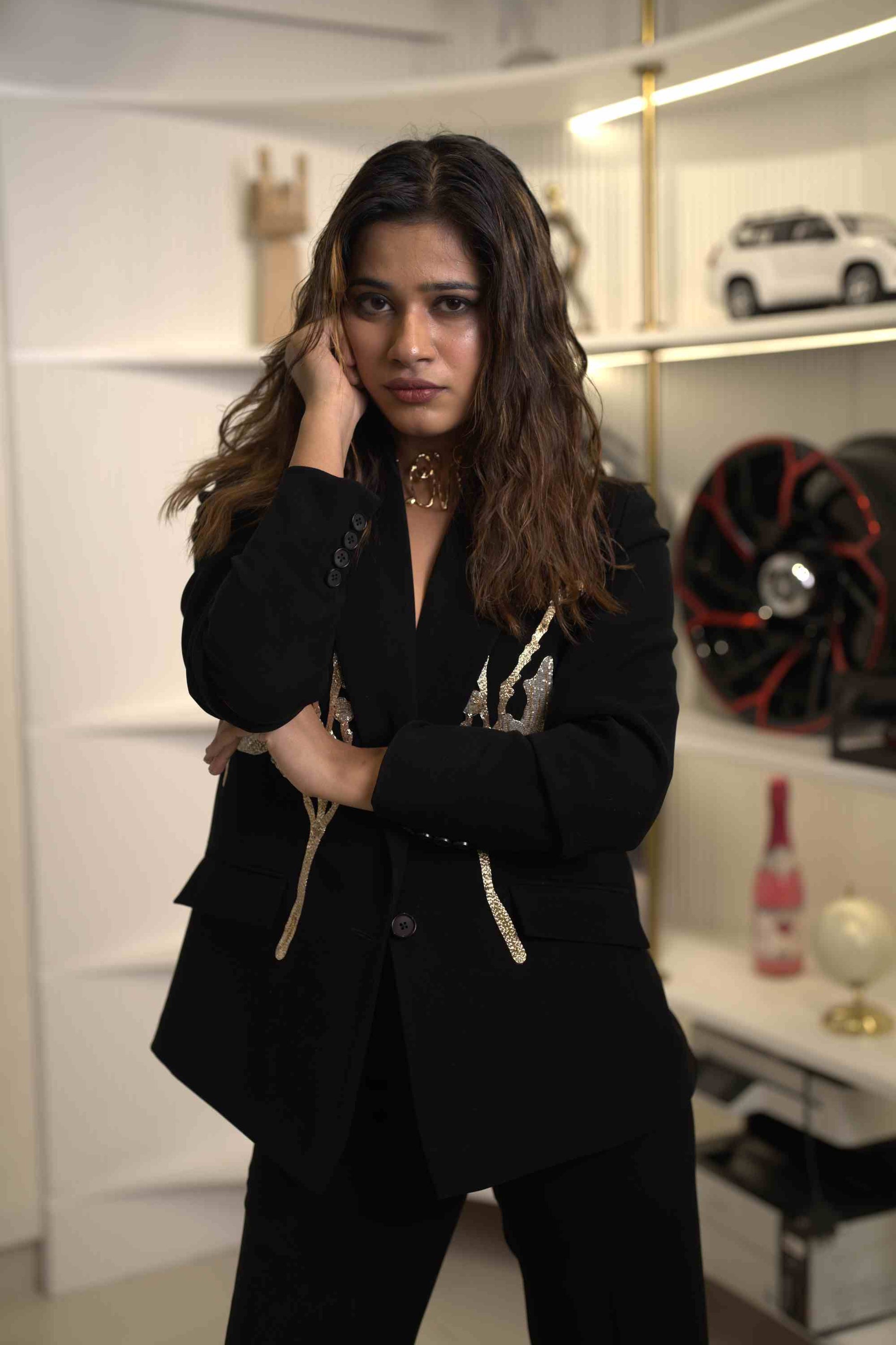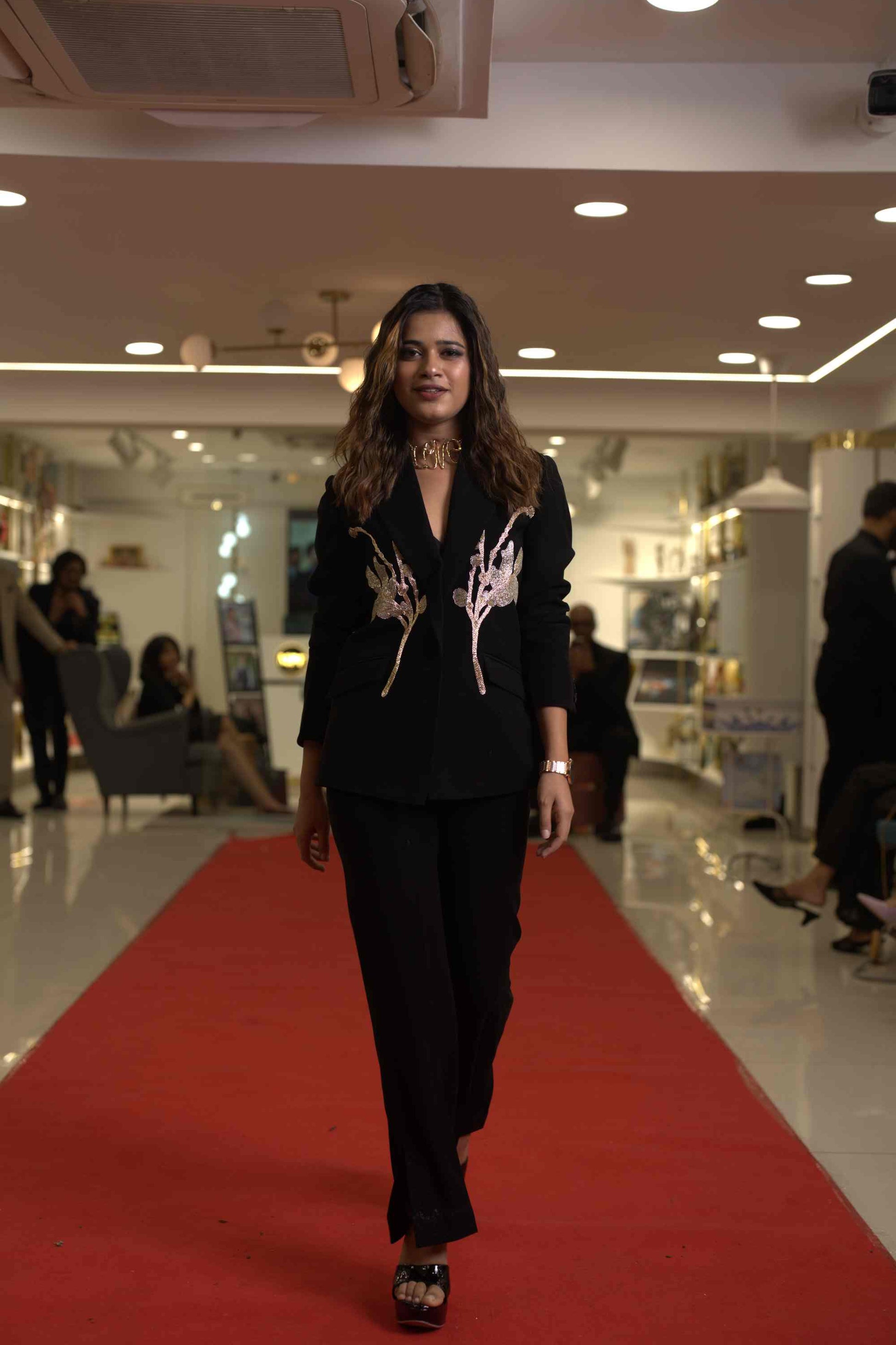 Designer 2 piece Blazer and trouser set, With white and silver cutdana, beads and pearls embellished embroidery on both side blazer front to waist Cuffs with a classic straight fit trouser ,making it a versatile piece that can elevate any wardrobe